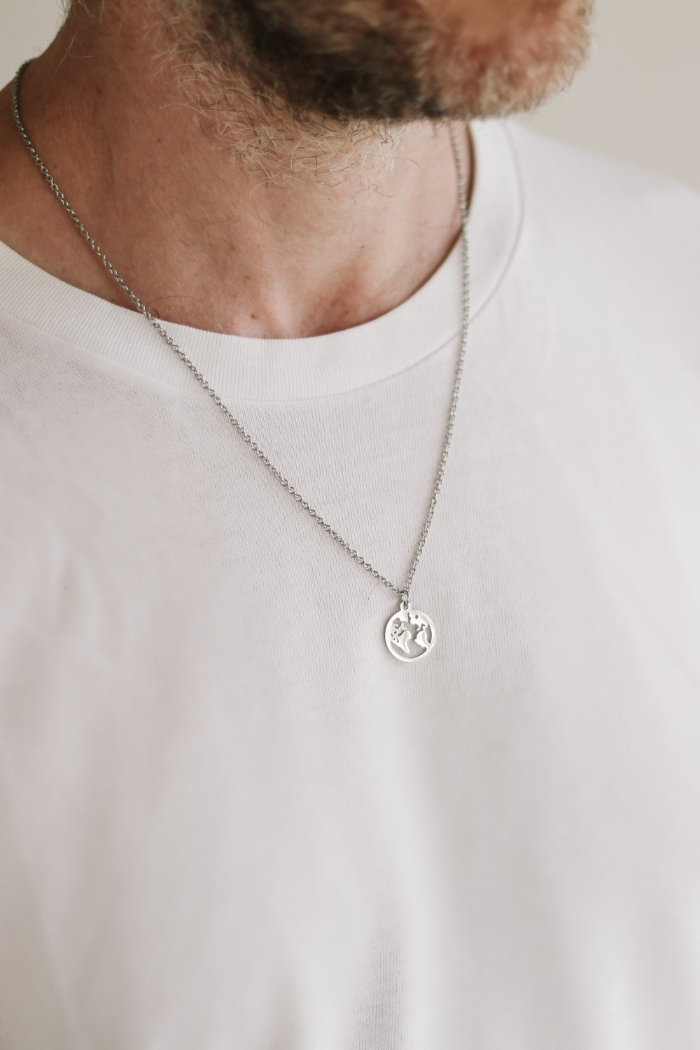 Sterling Silver World Map Necklace Atlas Globe Continent Simple